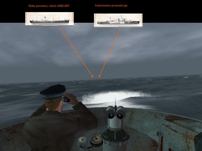 W tym czasie wachtowy określał typ frachtowca i eskortowca, o ile było to możliwe z takiej odległości.