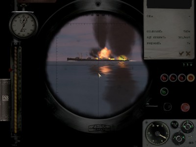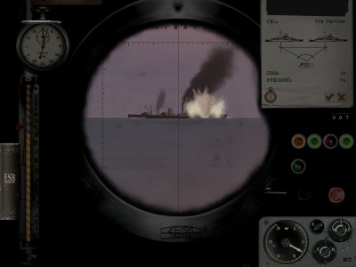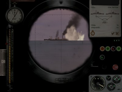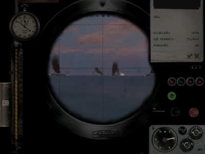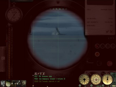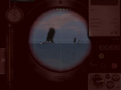 Następnie dokładnie się rozglądam i się wynurzam lecz brytole obsadzają działo co kończy się 24% integrałki, na peryskopowej staram się wyjść z konwoju korzystając z hałasu tworzonego przez frachtowce.