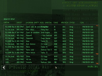 Poprzednie moje misje (A już na pewno "Zaopatrzenie Anglii") były zwane "poprawiaczami karier", oczywiście były tak zwane tylko na podstawie wyglądu misji w edytorze, czyli zanim były płynięte, potem były nazywane KIA'trollami. Dałem za dużo sporych celów i za łatwo je zatopić. Można bardzo poprawić karierę. Ta misja miała być przeciwieństwem (żeby nie było, że robię same misje z tłustymi celami ale bardzo trudne do przeżycia): tą misję łatwo przeżyć (i jak widać to się udało skoro Olek przeżył... i to się wynurzając) ale też mniej z niej wyciągnąć... i to mi chyba nie wyszło. Wynik wydaje mi się, że jest zbyt duży. Ponad 70k BRT w jednym patrolu... to dużo.