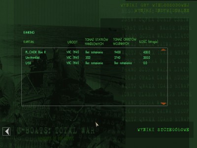 Jak zwykle nie trafiłem w trasę konwoju i znalazłem się 4 km od niego. Chroniąc moją 0 BRT karierę posłałem torpedę parogazową z 3km w niszczyciela (nie trafiłem ale prawdopodobnie przeszła bardzo blisko). W każdym razie zwróciłem jego uwagę by podpłynął bliżej. Następnie z 700m posłałem jedną torpedę na oko, bawiąc się życiem całej 43 osobowej załogi w jakąś strzelankę. Jednak trafiłem go idealnie w sam środek. Zwróciło to uwagę jakiegoś Tribala, jednak będąc 2 km ode mnie, zmienił zdanie i wrócił do konwoju. Próbowałem ścigać konwój, w międzyczasie Włosi przybyli postrzelać. No to dołączyłem do nich z moją 88mm armatką. Stoczyłem pojedynek artyleryjski z Ddekiem, odnosząc zwycięstwo w tej bohaterskiej walce (taa wspomagały mnie włoskie pancerniki ale co tam). Strzelałem też do jakiegoś mercha. Ostatnie dwie C3 zostawiłem, Finek pomylił datę w misji więc były neutralne, nie chciałem łamać rozkazów.
