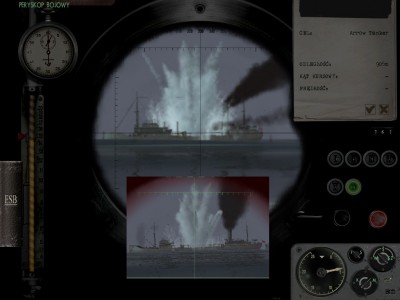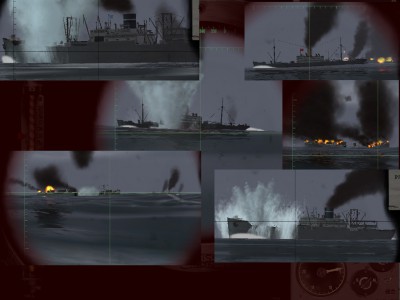 W sam raz dla cargo steamer-a namiar 005* odległość 1300 metrów AoB 95*, w tym momencie wyławiam cichy ping z pomiędzy rozmów zanurzenie mała na przód prędkość celu 6.5 węzła pal. chwilę potem widzę eksplozje,zaczynam opuszczać peryskop i słyszę śruby, już po mnie ale nic cisza nie pinga nie zrzuca bomb dobra cicho nas tu nie ma i tak przepłynąłem przez konwój i nic do zatopienia. Ostatnie 20 minut i Surv