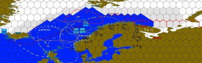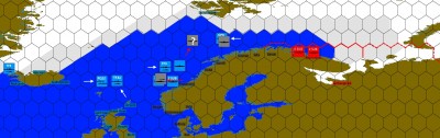 Niestety, Beaufightery z Coastal Command osiągną Bergen, ale nie Trondheim. (Dolecą 3 pola od Lerwick, a U-Boot jest już 4 pola. Tylko Cataliny spośród sił ci dostępnych są w stanie tam dolecieć. Beafightery mogą zapewnić tylko wsparcie na wypadek, gdyby Cataliny musiały uciekać, ale i mogą ją doprowadzić tylko do około 65N 6E (i tam też odbiorą je, bo to normalna strefa patrolowa ich, więc też nie jest to jakieś "proszenie o przysługę)), a U-Boot musi być zaatakowany na pozycji około 65N 8E.