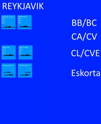 Dodatkowo, jak bardzo potrzebujesz wsparcia, to możesz poprosić admiralicję o "awaryjne wsparcie" w postaci 1-4 starych niszczycieli lub niszczycieli A-I (Scapa Flow) lub też do 4 amerykańskich niszczycieli (Reykjavik)