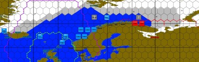 Gdy Andrey uważał, że to już wszystko i może spać spokojnie, zameldowano z lotniska, że siły VSS-SF wykryły na północ od Kirkeness, blisko lodu dwa statki. Duży frachtowiec i mały eskortowiec. Choć początkowo w sztabie ucieszono się, że oto przed nimi jest szansa na przechwycenie niemieckiego zaopatrzeniowca, nagle wszyscy zadali sobie pytanie... Skoro frachtowiec mija Kirkeness i dalej kieruje się na wschód, jednostki mogły iść tylko do Związku Radzieckiego... To nie był kierunek, który obierały niemieckie konwoje przybrzeżne... [na razie do celu dolecą tylko samoloty z zasięgiem 2]