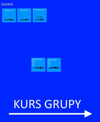 18 statków handlowych (w tym 3 zbiornikowce floty) obecnie było eskortowanych przez 16 niszczycieli, 12 korwet, 2 krążowniki oraz jeden okręt przeciwlotniczy i 1 lotniskowiec eskorty (ps. mam pomysł na misję SH3). Była to niezwykle silna eskorta, jak na taki mały konwój, ale i zagrożenie przeciwko któremu się kierowali było ogromne. Ich sukces zależał teraz od tego, kiedy wróg dowie się o ich obecności...