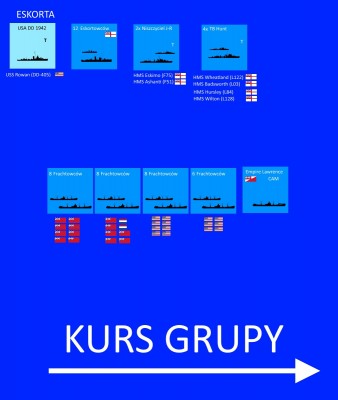 11 frachtów w dwóch kolumnach jak dotychczas. Eskortą się nie zamieniamy, bo chcem by część chłopaków z PQ miała okazję wrócić do WB - także...