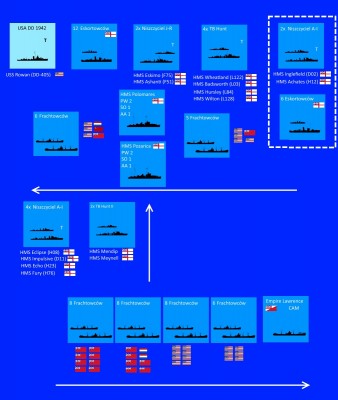 Aha. To możemy zmienić. Tylko ustaliłeś z Toveyem, co przechodzi (min. Eskomo) i sam wsiadłeś na Eskimo. To kto zamiast Eskimo przechodzi do konwoju PQ18? [Albo inaczej. CO przechodzi do konwoju PQ?