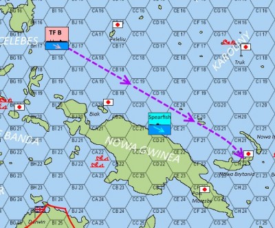 -Raczej nie płyną nigdzie indziej, jak do Rabaul. Z tą prędkością dotrą tam późnym wieczorem 20 września.... Ale pojutrze powinni w nocy przechodzić przez obszar CE20-CF21... Jesteśmy tam w stanie dotrzeć w ciągu tych dwóch dni, skipper.