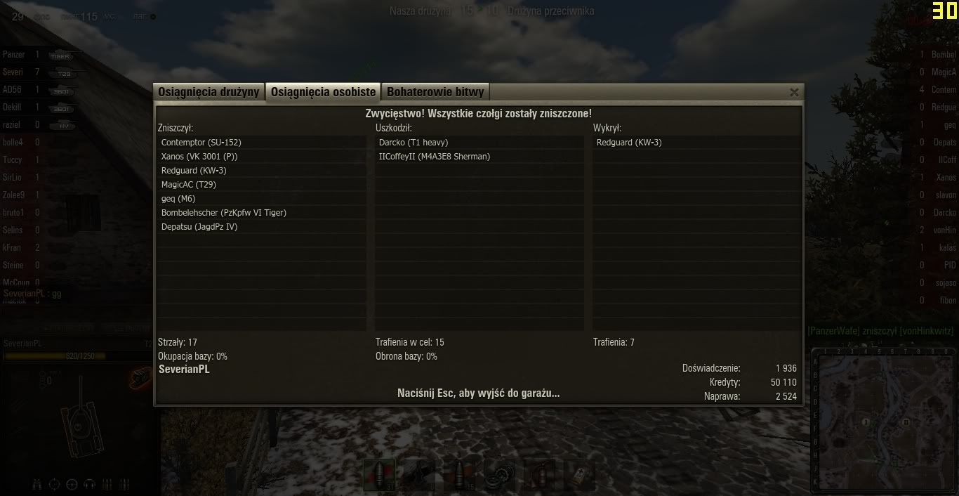 Mnie juz nic nie zaskoczy 6 czołgów zniszczonych 4 uszkodzone 4 wykryte 266 doświadczenia. |