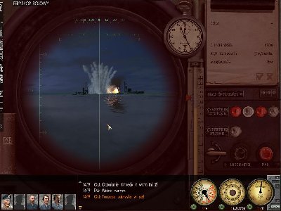 Wpłynąłem postrzelałem, trafiłem lotniskowca i linera... Konwój wykonał koło... Trafiłem (lub tuż obok poszło) lotniskowca, dorwałem proteusa... Zobaczyłem, ze ten T3, co kilka rayz oberwał ucieka i posłałem mu torpedę... Po wymierzonym czasie nie trafiła (ostatnia była).. Uznałem, że trudno... 60 sekund później BUM!!