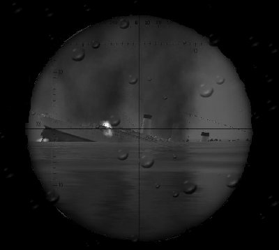 Liniowiec odpowiada ogniem z dział pokładowych, Mój okręt otrzymuje kilka trafień i zanurzam się aby zaatakować, w tym samym momencie w okolicach rufy liniowca widać słup wody.