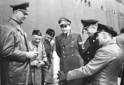 Czy to w tle, to nie jest przypadkiem burta okrętu?? Hm. Jeżeli ich płaszcze są ze szarej skóry, a nie z zielonej, to pewnie jest to załoga tegoż okrętu, lub jakiegoś U-Boota. (Poza Dönitzem i Speerem oczywiście. ) Jestem blisko?