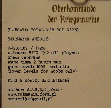 - Tak, rzeczywiście - kiwnął głową dowódca flotylli. - Widzi pan kapitanie Andrev, nastąpił zbieg niepomyślnych okoliczności i Pański udział w walkach na Pacyfiku jest hmm... niemożliwy do realizacji. Jednak niech się pan nie cieszy. Z raportu B-Dienst wynika, że do Murmańska zbliża się dość istotny konwój z pomocą dla Sowietów. Niestety nie byliśmy w stanie zaatakować go wcześniej, a obecnie znajduje się on niemal u celu....