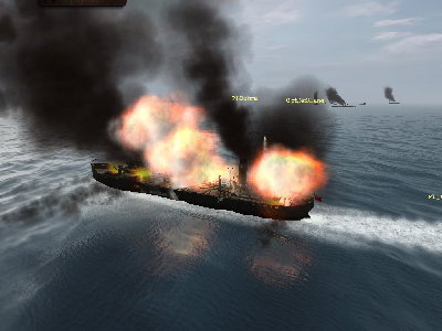 Coz Ci co grali wczesniej, juz wiedzieli o co biega. Ci co grali pierwszy raz ..., hm dlugo nie pozyli. Na dzien dobry ktos tak halasowal, ze zwrocil uwage czolowego DD. Ktos jak zwykle na upartego probowal zatopic "Queen Mary". Ale ta zaladowana chyba helem, przyjela wszystkie trafienia i poplynela dalej, jakby nic sie nie stalo. Pozniej to ju jedno wielkie polowanie. Sfora DD'kow, konsumowala kolejne ofiary, a wujek tes robil fotki, topil lub probowal utopic kolejne merchy.