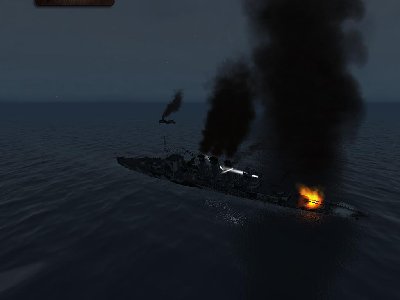 No tak. Podszedłem lajtowo do patrolu i .... zszedłem po 10 minutach. Zauważono mnie, gdy wychodziłem na pozycję do ataku na pancernik. Zostałem obrzucony bombami i mocno uszkodzony. Później brakło już mocy w silnikach na kolejne uniki i ... KIA. Za to mogłem podziwiać testowaną zmodyfikowaną wodę.