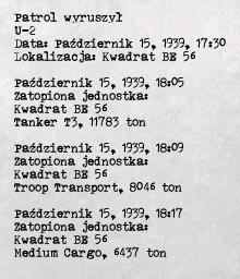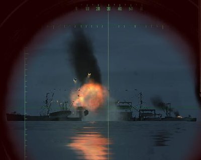Wszedłem do konwoju bardzo blisko niszczyciela. Na szczęście alarm w konwoju został podniesiony chwilę później. Planuję atak. 4 dziobowe do dwóch T3, rufowa do Troopa. Już się ustawiam, gdy drugi T3 (ten mniejszy) wylatuje po trafieniu torpedą... No to zmiana planów... Atak na T3 i Troopa. T3 grzecznie wyleciał w powietrze po drugiej torpedzie, Troop stanął po 1. Zawracam po cichu, bo ten DD, co go mijałem, kręci się i rzuca bomby. Torpeda do troopa za 30 stopni... Kurka wodna? Wylatuje? Zaraz... Ale dlaczego tylko dziób? W tej chwili zza dziobu wyłania się wybuchający Chatman... No to dobitka. Troop tonie. Zbliża się stary liniowiec... 1 torpeda... Niecelna... Dobrze, zaraz coś przeładują.... Co? Dopiero połowa ładowania? Przecież było pół ładowania, gdy ten DD się zbliżył! Ile czasu? 4:30?!... 4:30.... 4:30....?.... 4:30... KURKA WODNA! Wyłączyć cichy bieg! Torpeda przeładowana. Medium Cargo w celowniku. Ostatni statek konwoju. Znów włączam cichy bieg, bo DD rzuca bomby tuż za mną... Zakręca... Kurka wodna, on skręca na mnie... Cisza na pokładzie... PING!. Gdzie on jest? 270? CAŁA WSTECZ! DD wykonał ostry zwrot, ale bomby poszły przede mną.... Wyrzucając dziób na powierzchni. Torpeda do celu i wiejemy! Już mam się zanurzać, gdy patrzę, że 40 sekund do trafienia.... Nie... Zostanę te 40 sekund (5 minut było do następnej torpedy, jakby ktoś myślał, że to była szarża, aby wystrzelić dobitkę)... Torpeda w celu, fotka i spóźnione zanurzenie. 155 metrów i cicha ucieczka. A jeszcze 40 minut patrolu....