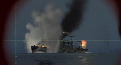 W ostatniej chwili dzielny kapitan tes zdecydowal sie na szarze w iscie Hollywodzkim stylu. Do abordazu!!!! Przerazona zaloga wyrzutni dziobowych zaczela w przyspieszonym tempie przeladowywac torpede. Jakies 2000 metrow przed wrogiem blady ze strachu dowodca sekcji zameldowal iz toreda nr.1 zaladowana. Ok strzelamy i .. abordazujemyyyy!!!. Na nieszczescie torpeda po chwili zatapia fregate.
