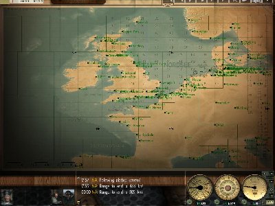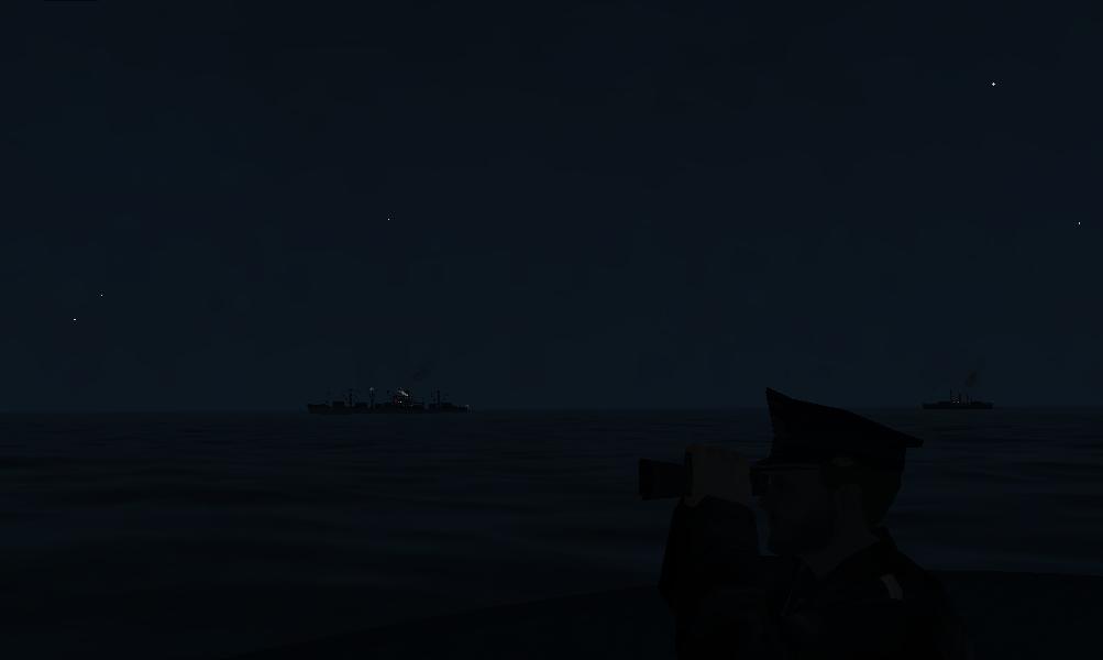 1:45 - Zatrzymujemy silniki. To 2 brytyjskie frachtowce. 4000 BRT i 2000 BRT. Kurs 270 W. Przepuszczamy je, staramy się zostać niezauważeni.
