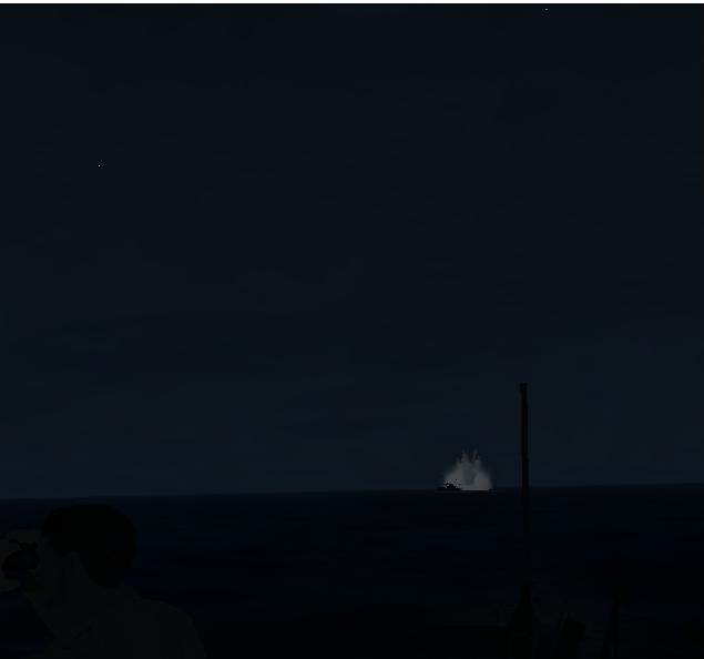 23:45 - Torpeda w wodzie. 55 sekund później trafienie. Wyprzedzamy frachtowiec, aby oddalić się od uzbrojonego kutra, który zapewne tu wróci. Frachtrowiec nic nie nadaje.