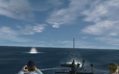 6:37 - Zostaliśmy zauważeni. Dwie motorówki patrolowe się zbliżają do nas, otwierając ogień. Zanurzenie 80 metrów.