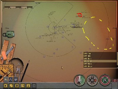 Stanąłem na rozdrożu. Jak teraz obronić konwój? Wysłałem 1 DD, aby krażył pomiędzy konwojem, a zatopionym parowcem i "odstraszał" Matrose, którego spodziewałem się w tamtym obszarze (czerwony), podczas, gdy Matrose... cały czas był w jednym miejscu (żółty). Torpeda, która zatopiła cel okazała się spudłowaną...