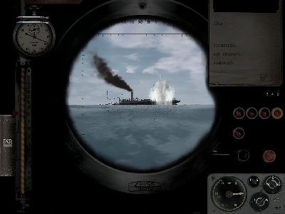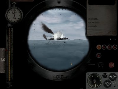 ....Zszedłem nieco głębiej, czekając na załadunek. Potem znowu peryskopowa i na dogodnej pozycji, prawie przede mną znalazł się Troop Transporter, który zatonął po jednym trafieniu. Obróciłem peryskop i było już za późno. Niszczyciel był bliziutko,...
