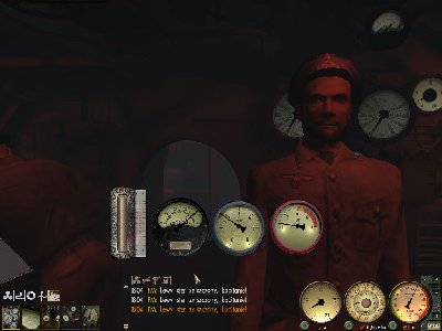 Więc wskazówka staje i zaraz później rusza w przeciwną stronę. Zatrzymałem okręt na około 180m, ale nadal do końca około 30 minut, a ja bez hydro, bez sterów głębokości na dziobie i w dodatku zniszczeniu uległ jeszcze lewy ster kierunku (widać na screenach) jak ciągle pisał komunikat. Lecz jakoś stojąc w centrali twarzą w kierunku dziobu nasłuchiwałem jak nadpływają DDki i manewrując udało mi się dotrwać do końca, ba !