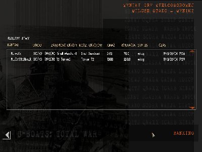co za patrol ... patrze w peryskop i nie wierze zamiast tłustych rybek do złowienia na które miałem cały arsenał to widzę tył innych Ubootów cała naprzód ... w końcu wyjście na powierzchnie .... nadal nic hydro cisza brak kontaktu ehh by uspokoić załogę włączyłem gramofon i tak sobie płyneliśmy i płyneliśmy i ....... 30 min później dym na horyzoncie zbliża sie namiar 75 lornetka w ręke i patrze ALARM !!!! 10m 20m szybciej do cholery 30m ... ping! ping! wyłaczyć ten gramofon cisza na okrecie 80m 1w głebiej !! ping! ping! ...plum plum ... okret wojenny namiar 40 ;90; 75; 0 plum plum ....ping ping głebiej ..... KIA