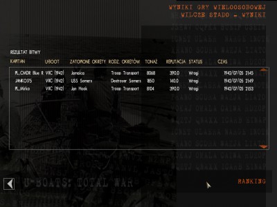 Po zamknięciu serwerów UBI, gry rankingowe SH3 były rozgrywane z konieczności na Tunngle i wykazały moim zdaniem pewne niedoskonałości takiego rozwiązania.