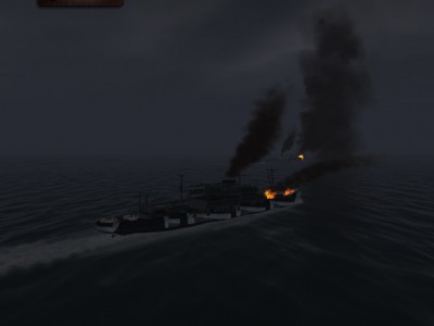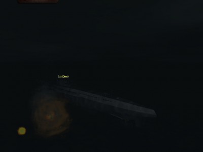 Wymanewrowałem DD ka i podchodziłem do konwoju . Gdy odległość pozwalał na oddanie już w miarę pewnego strzału za rufą pojawił się trauler . Myślałem,że mnie nie zauważy , wcale nie pingował , i nagle słysze :plum ,plum AAAAAA!!! Cała na przód i udało mi się . Troszke mi tylko kiosk pokieroszował. Drań zawrócił i znowu mnie zbombardował ,ale mniej precyzyjnie niż ostatnio . Niestety zawsze tak zawracał ,że nie miałem szans go trafić . Po trzecim ataku zrobiło się nie ciekawie . Integralność spadła do 21% ,ale nic nie przeciekało i w dodatku trauler odpuścił , przynajmniej tak mi się wydawało . To był mój błąd . Zamiast zmienić położenie ,zostałem na miejscu szykują sie do ataku na C2 .... a tu nagle z mroku wyłania się mój prześladowca i serią bombek posyła mnie na dno .