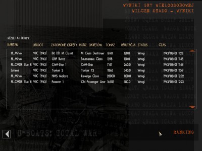 Przeciąłem kurs nadpływającemu z prawej burty tankowcowi mając nadzieję na chwilową osłonę. Gdy odpaliłem torpedę do ciężko uszkodzonego Revenge’a, usłyszałem dwie potężne eksplozje, które wstrząsnęły moim okrętem. Ubot został ciężko uszkodzony, w kilka sekund zginęła cała załoga, i niestety - GAME OVER.