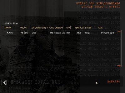 Moja załoga, razem z resztą z kapitanem, to chyba poczuła się zbyt pewnie. Płynę na wschód do hałasu handlowca, okazuje się że to to neutral, ale dwie torpedy poszły. Potem od południa mija mnie grupa uderzeniowa. 4 ciężkie i około 5 dd przy sporej prędkości ponad 13 węzłów. Z 4 torped to 3 pudła i jedna wymanewrowana. Cóż gdy minęła mnie już prawie cała ta grupa, widzę na północny zachód od mojej pozycji sporo dymów. Szybki zwrot i pełna na przód. Po 10 min zainteresował się mną dd który płynął jako ostatni z tej grupy uderzeniowej i się zaczęło. Do konwoju zbliżyłem się na około 2000m. Strzelam do c2, nic kolejny statek też nie obrywa. Ostatnia szansa to cargo steamer jednak nawet jego nie udaje mi się trafić. Najgorsze zaczęło się jak minął mnie konwój. Zleciały się 2, a może nawet 3 kolejne dd, 5 kutrów torpedowych i w tych oto warunkach bawiłem się do ostatnich minut misji. Około 1 czy 2 minut przed końcem patrolu zgubiłem pościg.
