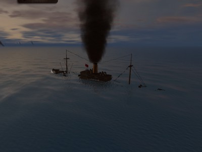 7:21 - osadzenie okrętu na dnie - na razie tylko lekkie uszkodzenia