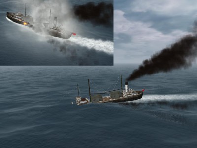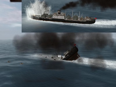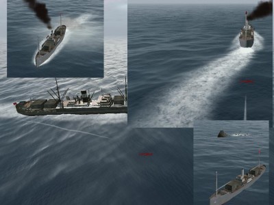 + dodatek do zawału tzw. miny (Gdy płynąłem 6 węzłów, aby dogonić ostatni statek i strzelić na odległość ok. 4700 m bo lekka mgiełka zasłoniła mi go to jak zobaczyłem 1 mine od razu dałem całą wstecz, aby wytracić daną prędkość )
