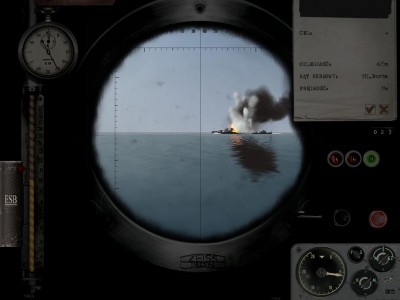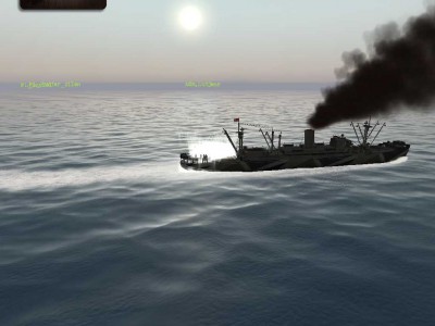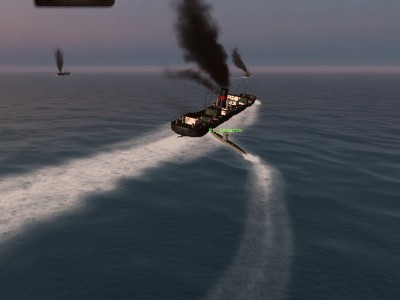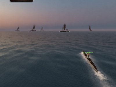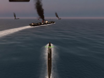 Została ostatnia torpeda, a ja widzę dym na horyzoncie. Podpływam i widzę... jakieś cś podobne do kutra, tylko z masztami w "V" patrząc od przodu, widzę w książce, że to nawet 1k ton nie ma to sobie odpuszczam, ale jeszcze dalej widzę sporo dymów, płynę pod wodą najszybciej jak kaczki potrafią I doganiam konwój bez eskorty, widzę kilka małych tankowców, chyba C3, chyba jakiś transportowy i Cargo Steamer. Biorę na cel tego ostatniego, bo niezły tonaż, a one mi zawsze po jednej torpedzie tonęły (zawsze im kil przetrąciłem). Tym razem niestety za płytko torpedę posłałem i nie zatonął aż do końca patrolu...