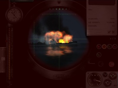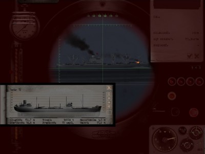 Płynę na peryskopowej, po dłuższym czasie dymy: z jednej strony dd-ek, z drugiej handlowiec. Handlowiec okazał się amunicyjnym, posłałem kilka rybek, niestety jedna wybuchła (z mojej perspektywy w śruby, z perspektywy Luciaka: w ogóle, więc przyjmijmy, że nie trafiłem). Na rufie pojawił się Auxiliary, posłałem rufową, niestety zrobił unik, posłałem dziobową, trafiłem, niestety dalej płynie. Na rufie pojawił się Cargo Steamer, posłałem rufową, niestety Luciak trafił wcześniej i zatopił. Zaczynam gonić płonącego Auxiliarego. W pobliżu nie ma niszczycieli, ryzykuję i płynę pełną mocą pod wodą i gonię go. Zbliżyłem się na jakieś 2,5-3 km. i zdziwiłem się: w tej chwili zatonął.