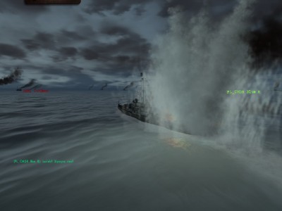 Około 17:00 staram się ruszyć do konwoju. Niestety, jestem na flance, a dwie fregaty są między mną, a konwojem i kogoś okładają (może wrak Tesia?). Nie ma szans na atak. Odpaliłem dwa akustyki do korwet, co szły w moją stronę i zanurzyłem się. Obie dostały i zatonęły. I o 17:30, gdy Luciak zgłosił KIA prosiłem o potwierdzenie statusu.