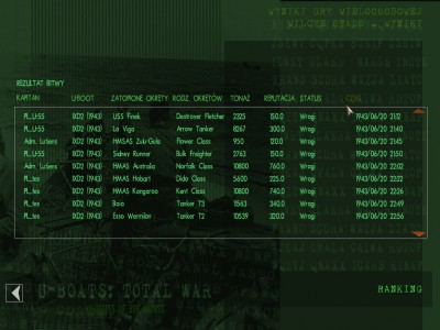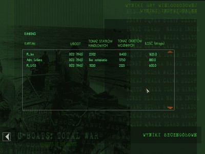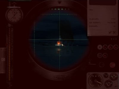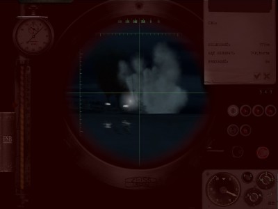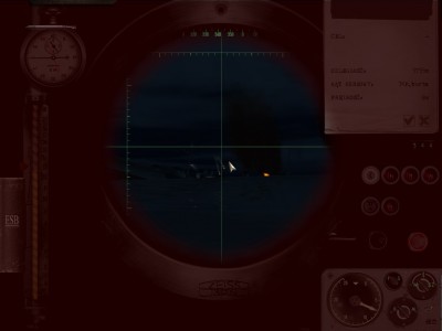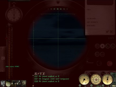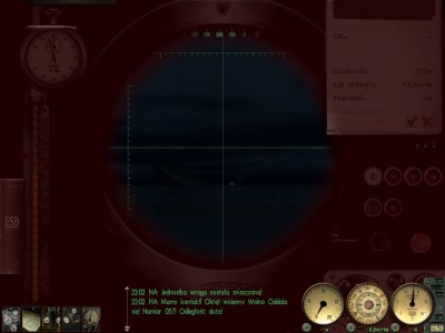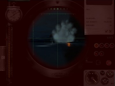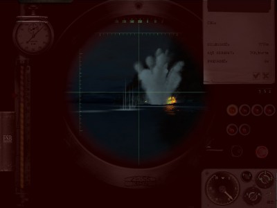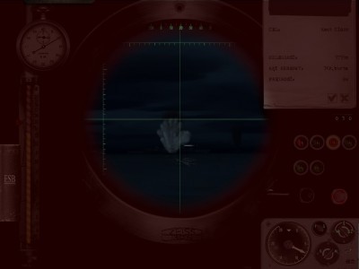 Zanurzenie alarmowe i zwiewamy. Ale mamy pecha. Natykamy sie na jakis nowy wynalazek. Eskortowiec z ultra dokladnym, laserowo wspomaganym sonarem wykrywa nas w kazdych warunkach. Schodzimy na 230m, rysujemy blachy na 94%, zwodzimy, zmieniamy kierunek, predkosc i nic. Kazdy jego nawrot konczy sie dokladnym pinganiem. W koncu zaloga nie wytrzymuje napiecia. Idziemy w gore. Nie chce po dobroci to walczymy. Na peryskowej sytucja niekorzystna. Suszarka wlasnie gotuje sie do kolenego ataku. Kapitan wpada na szalenczy pomysl. Podwodny taran. Albo my albo oni. Niszczyciel uderza w nas z impetem, wyczekujemy ekranu koncowego @ RIP, szczesliwie odnosimy drobne uszkodzenia i walczymy dalej. Tylko gdzie jest nasz oprawca? Kapitan odwraca peryskop a tu niespodzianka. Eskortowiec w chmurze dymu schodzi pod wode. Chyba zatopil sie wlasnymi bombami glebinowymi.