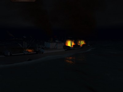 Kolejno celuję do tankowca, z dwóch torped, jedna trafia w śródokręcie. Celuję ponownie i poprawiam. W międzyczasie tankowiec zostaje trafiony 2 torpedami innego okrętu, ja zaś wystrzeliwuję, kolejne rybki by dobić, zastopowaną cysternę – tonie dopiero po kolejnych 3 trafieniach.