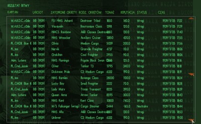 Co jest ? Tak szybko ???? Zanurzyłem okręt zmieniłem kurs. Na szczęście, żadne wybuchy nie wstrząsnęły okolicą. Próbowałem wydusić od Pierwszego, co to za samolot widział: myśliwiec ??? bombowiec ??? Niestety zamknął się w sobie i tajemnica nigdy nie została ujawniona. Za to ujawnił się niszczyciel z polską banderą, klasy Bourrasque. Który skutecznie odciął mnie od sygnałów na hydro. Na szczęście robiło coraz ciemniej, Polak oddalił się na 1,5 km, a ja wynurzyłem okręt i całą naprzód popłynąłem w kierunku frachte.