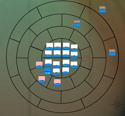 U-122 zbliża się do konwoju. Obrać pojedyncze cele na przedzie konwoju. Wystrzelić do każdego celu jedną torpedę i wycofać się. Utrzymywać bezpieczną odległość.