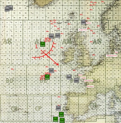 W kwadracie BE29 zatopiono w przeciągu 48h 5 celów o łącznym tonażu 20 000 BRT
