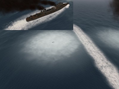 Wpływam prostopadle do konwoju gdy bez powodu prosto na mnie płynie niszczyciel, staram się jakoś manewrować, przepłynął 500 metrów ode mnie, nie wykrył, kawałek dalej wyleciał w powietrze. I już mam powód dlaczego na mnie płynął.