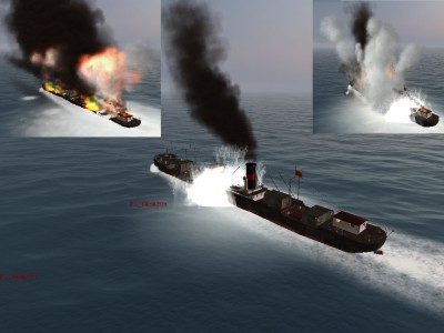 Kanaron zatapia cel 1 torpedą i dwie kolejne doprowadzają wrak do większej eksplozji.