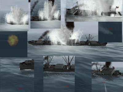Popełniłem błąd, przez pomyłkę zrobiłem unik po usłyszeniu bomb, które spadały w Olka. Zrozumiałem pomyłkę, kiedy po chwili doszły mnie ping-ping pobliskiego Ddeka. Później zabawa 30 min w Meksykańskie Szczęki. Przed dwoma ddeki jescze dawałem radę, ale 5 to ciut za dużo. Salwy bomb szły co minutę, w końcu jedna była celna. Cały okręt zalało, szasowanie nie umożliwiło mi wynurzenia, na 300m KIA. Zbyszek popłynął w kierunku mniejszego konwoju: 3 handlowców i ddeka. Zatopił je wszystkie.