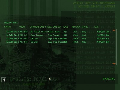Co gorzej, okazało się, że mój kierunek ucieczki pokrywa się ze wznoszeniem szufli. Nadeszło ostatnie 15 minut... Ostatnie 10 minut... Ostatnie 5 minut, ŁUP! Bezpośrednie trafienie powoduje znów uszkodzenie akumulatorów i przecieki. Co gorzej, teraz wszystkie akumulatory padły. Toczyłem wyścig z naprawą akumulatorów, zalewaniem okrętu i niszczycielami. Te ostatnie były szybsze i 200 sekund przed końcem gry dostałem bezpośrednie trafienie.