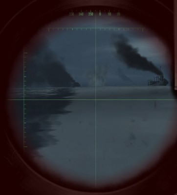 Patrol zaczął się przyjemnie. Konwój gdzieś dalej sobie taśtasia więc kawałek drogi do niego poszedłem na wynurzeniu. Następnie po zauważeniu dymu pierwszego eskortowca zanurzyłem się i rozpocząłem wchodzenie do konwoju. W trakcie mijania pierścienia eskorty zebrałem dane na temat T2. Po odpaleniu torped rozejrzałem się i zauważyłem DD kierującego się w moją stronę. Dałem rozkaz zanurzenia i dalej na małej prędkości zacząłem odchodzić w stronę konwoju. Po chwili 2 moje torpedy eksplodowały, wyszedłem na peryskopową 1-2 minuty później, lecz jedyny płonący cel już był daleko. Zabrałem się za T2 torpedy poszły z ponad 2Km. Po minięciu czasu wiedziałem że coś jest nie tak. Dla tego podszedłem jeszcze bliżej. Po przeładowaniu Torped i ponownym zebraniu danych odpaliłem kolejne dwie.... które też nie trafiły . W tym momencie zorientowałem się że powoli konwój zaczyna mnie mijać, a eskorta jest daleko czymś zajęta (jeden obrzucał okolice gdzie mógł mnie wykryć jakieś 30 min wcześniej), więc przyśpieszyłem do 4-5 węźlików i próbowałem dopaść "Cargo Steamer", ale torpedy poszły za nim i... trafiły Amunicjaka ... Piękne fajerwerki. Następnie odpaliłem rufowe lecz też spudłowałem. Po przeładowaniu dziobowych torped odpaliłem jedną w tego samego "Cargo Steamera" już miała w niego uderzyć i wtedy 50-100 metrów koło jego burty eksplodowała. Jakiś tankowiec który dostał trafienie i zastopował przykuł moją uwagę. Po ustawieniu się odpaliłem torpedę i chwilę potem eksplodował. Zdecydowałem że nie będę gonił konwoju dlatego skierowałem się w drugą stronę i wyszedłem z konwoju po godzinie.