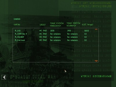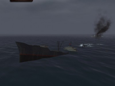 Cóż. Deszcz, deszcz, deszcz. Pierwszego DD widzę, jak wyłania się z mgły i nagle atakuje kogoś. Jacek był blisko, gdy Zbyszek postanowił zaatakować eskortę. Niszczyciel ściągnął 2 dodatkowe na pomoc (i Fregatę!)... A ja byłem blisko. Niestety, mnie też wyniuchali. Po pierwszej salwie uciekłem na głębinę z 90% integralki. Pozostało mnie już tylko wykonać udany unik i będzie w miarę stabilnie. Niestety, hałas napraw i schodzenia powodował dobry namiar, a gdy jeden atakował, drugi naprowadzał i mój unik został wykryty. Dostałem chyba bezpośrednią bombę i tak się skończyło.