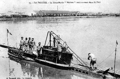 watt-1906.jpg jak wida? Francuzy posiada?y nawodny nap?d parowy !!!!, by?o to do?? k?opotliwe, poniewa? przed zanurzeniem nale?a?o wygasi? palenisko w?glowe, spu?cic par? z kot?a, zdemontowa? i wci?gn?? do ?rodka komin i uszczelni? nawiewniki powietrza. pierwsze silnik