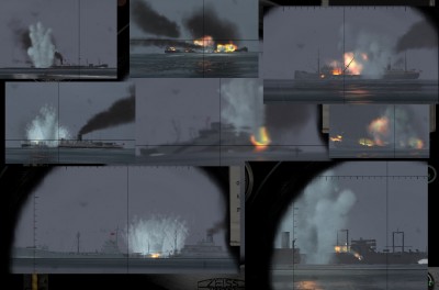 Potem strzelanko do frachtowców. Eskorta był praktycznie głucha. Niestety w pewnej chwili nie zrobiłem zwrotu i frachtowiec przejechał mi po kiosku. Oczywiście eskorta się zleciała. Najpierw dziwny AB, który tylko pływał i próbował taranować.